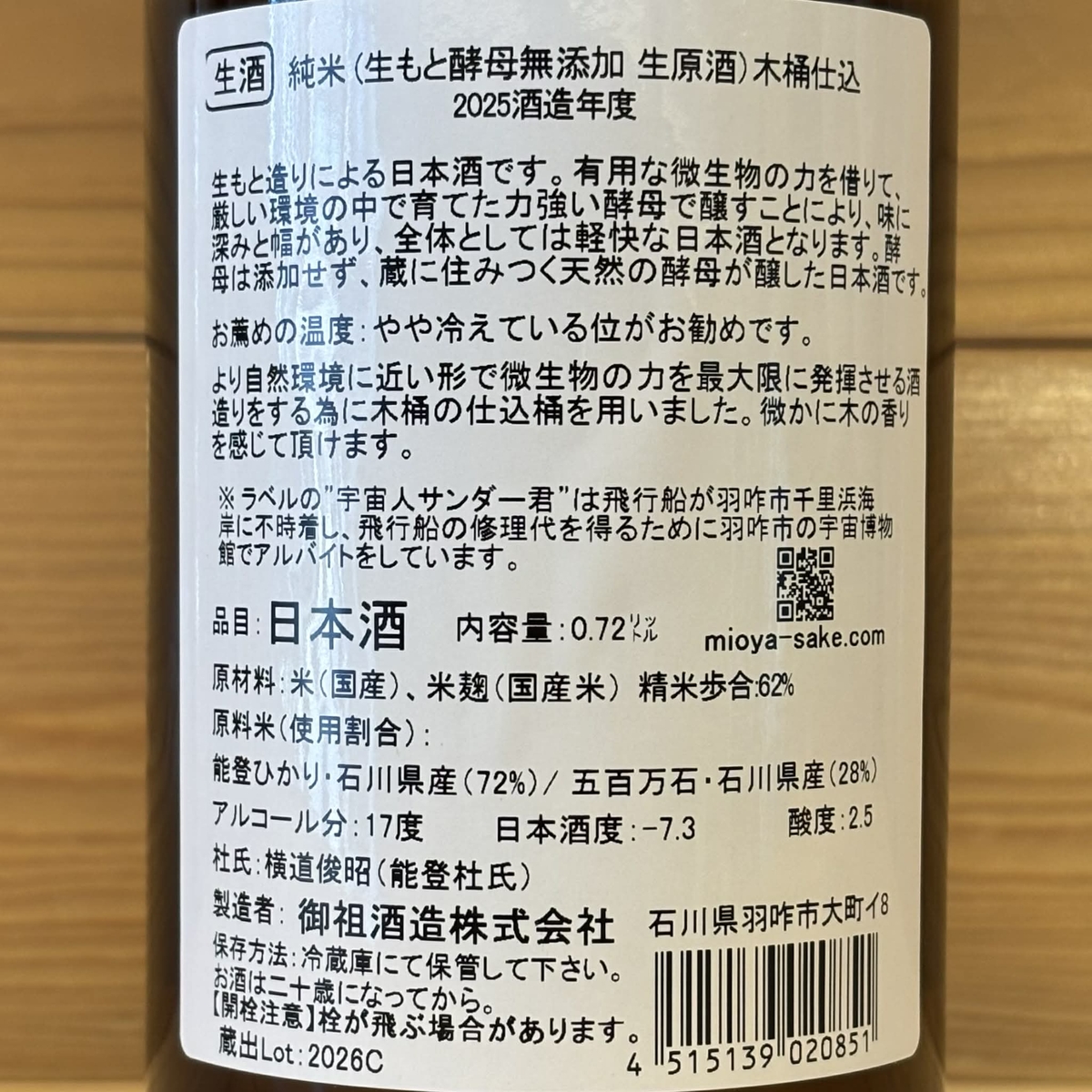 遊穂(生もと酵母無添加 生原酒) 木桶仕込 2025酒造年度 720ml 販売価格 1,980円(税込み) 会員価格 (税込み) 通常価格 (税込み) 在庫 ○ 商品コード JANコード 数量 - + カートに入れる カテゴリー 遊穂(御祖酒造/石川県羽咋市) メーカー 御祖酒造株式会社 ブランド 遊穂 注文年齢制限 20歳 ~ 注文手続き画面にて、生年月日を入力いただきます。 要冷蔵の商品のためクール便での配送となります。あらかじめご了承ください。従量ポイント:1(従量ポイントとは、送料決定のための指数です。詳しくは、「送料について」のページをご確認ください。) RECOMMENDEDおすすめアイテム 能登末廣 特別純米しぼりたて 山田錦 720ml 1,980円(税込み) 奥能登の白菊 純米大吟醸 無濾過生原酒 720ml 4,180円(税込み) 能登誉 純米吟醸 720ml 2,156円(税込み) 竹葉 オイスター 純米酒 720ml 1,980円(税込み) 在庫切れ 宗玄 純米吟醸 無濾過生原酒 令和7酒造年度 720ml 2,365円(税込み) 「能登と共に」石川の地酒頒布会(720ml 2本セット計3回) 16,500円(税込み) 在庫切れ 竹葉 いか純米 720ml 1,980円(税込み) 手取川 純米吟醸 生原酒 石川門 720ml 2,090円(税込み) 【輪島朝市ばあちゃんの味】干しほたるいか 594円(税込み) 在庫切れ 【輪島朝市ばあちゃんの味】甘エビ素干し 594円(税込み) 宗玄 純米 石川門 無濾過生原酒 令和7酒造年度 720ml 1,595円(税込み) 大江山GO 純米大吟醸 生原酒「百万石乃白」 720ml 3,410円(税込み) 奥能登の白菊 純米吟醸 無濾過生原酒 令和七年度新酒 720ml 2,750円(税込み) 在庫切れ 谷泉 純米 720ml 1,980円(税込み) 在庫切れ 竹葉 活性にごり酒 720ml 1,650円(税込み) 在庫切れ 手取川 山廃 純米吟醸 720ml 2,310円(税込み) 遊穂 純米酒 ゆうほのしろ 720ml 1,980円(税込み) 在庫切れ 遊穂 "YUHO PIANO" 純米吟醸生原酒 「a」 720ml 1,980円(税込み) 遊穂 "YUHO PIANO" 純米吟醸生原酒 「G」 720ml 1,980円(税込み) 遊穂 純米吟醸生原酒 うすにごり 「花さかゆうほ」 720ml 2,000円(税込み) 在庫切れ 宗玄 しぼりたて生原酒 720ml 1,430円(税込み) 在庫切れ 宗玄 純米 石川門 720ml 1,540円(税込み) 遊穂 純米酒 720ml 1,430円(税込み) 竹葉 能登純米 無濾過生原酒 720ml 2,090円(税込み) 在庫切れ 遊穂 純米無濾過生原酒 初しぼり 720ml 1,800円(税込み) 在庫切れ ハイディワイナリー QUARTET SPARKLING FLOWER 2024 カルテットスパークリングフラワー2024 750ml 4,180円(税込み) 在庫切れ 竹葉 しぼりたて生原酒 720ml 1,650円(税込み) 在庫切れ 竹葉 純米吟醸 無濾過生原酒 720ml 2,200円(税込み) 在庫切れ 竹葉 純米 無濾過生原酒 720ml 1,980円(税込み) 在庫切れ 谷泉 純米 生原酒 720ml 1,980円(税込み) 在庫切れ CATEGORYカテゴリー ◆ 能登の日本酒 能登復興支援「能登と共に」石川の地酒頒布会 奥能登の白菊(白藤酒造店/石川県輪島市) 能登末廣(中島酒造店/石川県輪島市) 千枚田(清水酒造店/石川県輪島市) おれの酒(日吉酒造店/石川県輪島市) 竹葉(数馬酒造/石川県能登町) 谷泉(鶴野酒造店/石川県能登町) 大江山(松波酒造/石川県能登町) 宗玄(宗玄酒造/石川県珠洲市) 大慶(櫻田酒造/石川県珠洲市) 遊穂(御祖酒造/石川県羽咋市) 池月(鳥屋酒造/石川県中能登町) 有磯 曙(高澤酒造場/富山県) ◆ 石川・能登のひやおろし2025 ◆ 能登のワイン 能登ワイン ハイディワイナリー ◆ 能登の焼酎 ◆ 能登の酒粕 ◆ 能登のお酒ギフトセット 日本酒ギフト ◆ 金沢 & 加賀の日本酒 手取川・吉田蔵(吉田酒造店/石川県白山市) ◆ 石川県の果実のお酒 石川県の果実のお酒(梅酒など) ◆石川県のクラフトジン ◆ 富山県の日本酒 ◆ 全国の地酒 雪の茅舎(齋彌酒造店/秋田県) 松尾(高橋助作酒造店/長野県) 春鹿(今西清兵衛商店/奈良県) 土田(土田酒造/群馬県) ◆ ジャパニーズウイスキー ◆ 焼酎 蔵の師魂(小正醸造/鹿児島県) ◆ヨーグルトのお酒 2026年03月 日 月 火 水 木 金 土 1 2 3 4 5 6 7 8 9 10 11 12 13 14 15 16 17 18 19 20 21 22 23 24 25 26 27 28 29 30 31 2026年04月 日 月 火 水 木 金 土 1 2 3 4 5 6 7 8 9 10 11 12 13 14 15 16 17 18 19 20 21 22 23 24 25 26 27 28 29 30