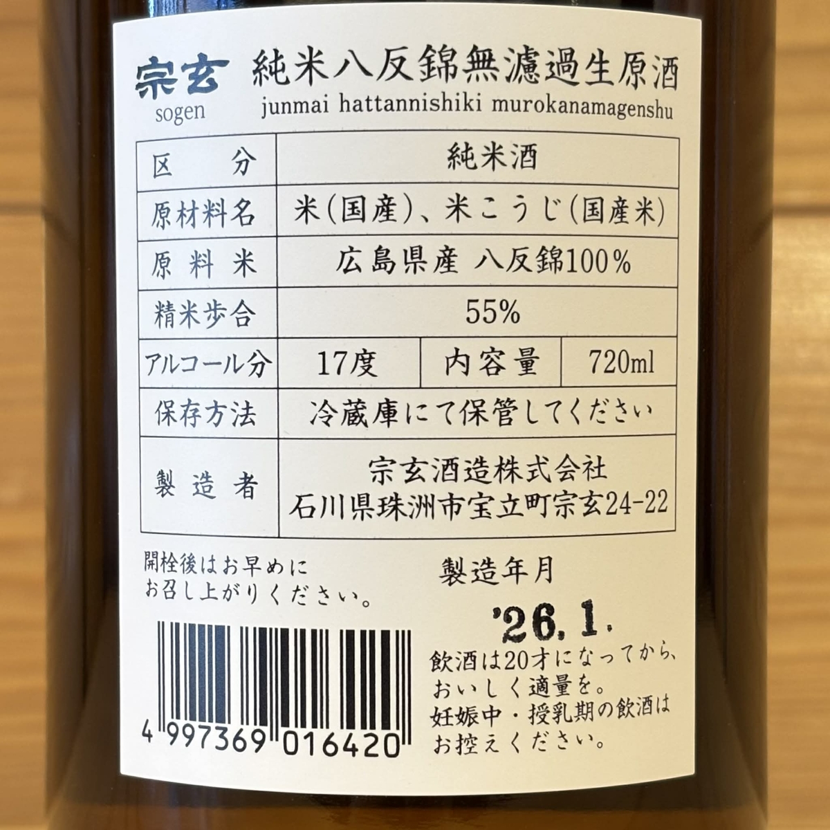 宗玄 純米 八反錦 無濾過生原酒 令和7酒造年度新酒 720ml 販売価格 1,650円(税込み) 会員価格 (税込み) 通常価格 (税込み) 在庫 ○ 商品コード JANコード 数量 - + カートに入れる カテゴリー 宗玄(宗玄酒造/石川県珠洲市) メーカー 宗玄酒造株式会社 ブランド 宗玄 注文年齢制限 20歳 ~ 注文手続き画面にて、生年月日を入力いただきます。 要冷蔵の商品のためクール便での配送となります。あらかじめご了承ください。 従量ポイント:1(従量ポイントとは、送料決定のための指数です。詳しくは、「送料について」のページをご確認ください。) CATEGORYカテゴリー ◆ 能登の日本酒 能登復興支援「能登と共に」石川の地酒頒布会 奥能登の白菊(白藤酒造店/石川県輪島市) 能登末廣(中島酒造店/石川県輪島市) 千枚田(清水酒造店/石川県輪島市) おれの酒(日吉酒造店/石川県輪島市) 竹葉(数馬酒造/石川県能登町) 谷泉(鶴野酒造店/石川県能登町) 大江山(松波酒造/石川県能登町) 宗玄(宗玄酒造/石川県珠洲市) 大慶(櫻田酒造/石川県珠洲市) 遊穂(御祖酒造/石川県羽咋市) 池月(鳥屋酒造/石川県中能登町) 有磯 曙(高澤酒造場/富山県) ◆ 石川・能登のひやおろし2025 ◆ 能登のワイン 能登ワイン ハイディワイナリー ◆ 能登の焼酎 ◆ 能登の酒粕 ◆ 能登のお酒ギフトセット 日本酒ギフト ◆ 金沢 & 加賀の日本酒 手取川・吉田蔵(吉田酒造店/石川県白山市) ◆ 石川県の果実のお酒 石川県の果実のお酒(梅酒など) ◆石川県のクラフトジン ◆ 富山県の日本酒 ◆ 全国の地酒 雪の茅舎(齋彌酒造店/秋田県) 松尾(高橋助作酒造店/長野県) 春鹿(今西清兵衛商店/奈良県) 土田(土田酒造/群馬県) ◆ ジャパニーズウイスキー ◆ 焼酎 蔵の師魂(小正醸造/鹿児島県) ◆ヨーグルトのお酒 2026年04月 日 月 火 水 木 金 土 1 2 3 4 5 6 7 8 9 10 11 12 13 14 15 16 17 18 19 20 21 22 23 24 25 26 27 28 29 30 2026年05月 日 月 火 水 木 金 土 1 2 3 4 5 6 7 8 9 10 11 12 13 14 15 16 17 18 19 20 21 22 23 24 25 26 27 28 29 30 31